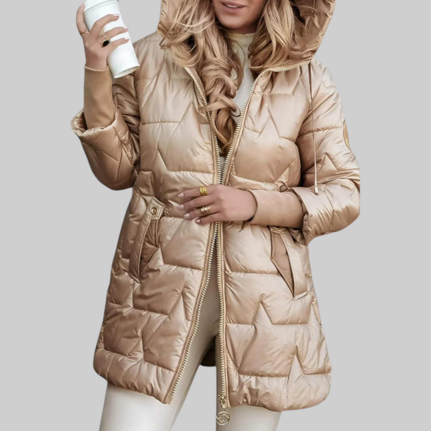 El abrigo Nolwen ha sido diseñado para quienes desean afrontar el otoño con calidez y elegancia. La suave mezcla de algodón ofrece una sensación agradable sobre la piel, mientras que el forro acolchado y la capucha protegen del viento y la lluvia. Un favorito confiable cuando el clima cambia y tu armario necesita algo práctico, sin renunciar al estilo.